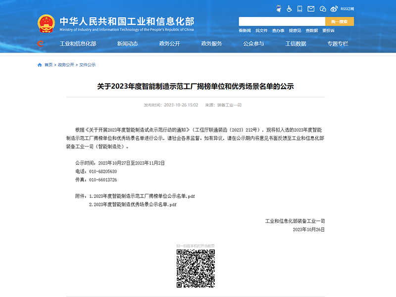 2023年10月26日國家工業(yè)和信息化部裝備工業(yè)一司根據(jù)《關(guān)于開展2023年度智能制造試點(diǎn)示范行動的通知》(工信廳聯(lián)通裝函〔2023〕212號)公示了2023年度智能制造示范工廠揭榜單位名單,我司乳化液泵站智能制造示范工廠項(xiàng)目上榜。