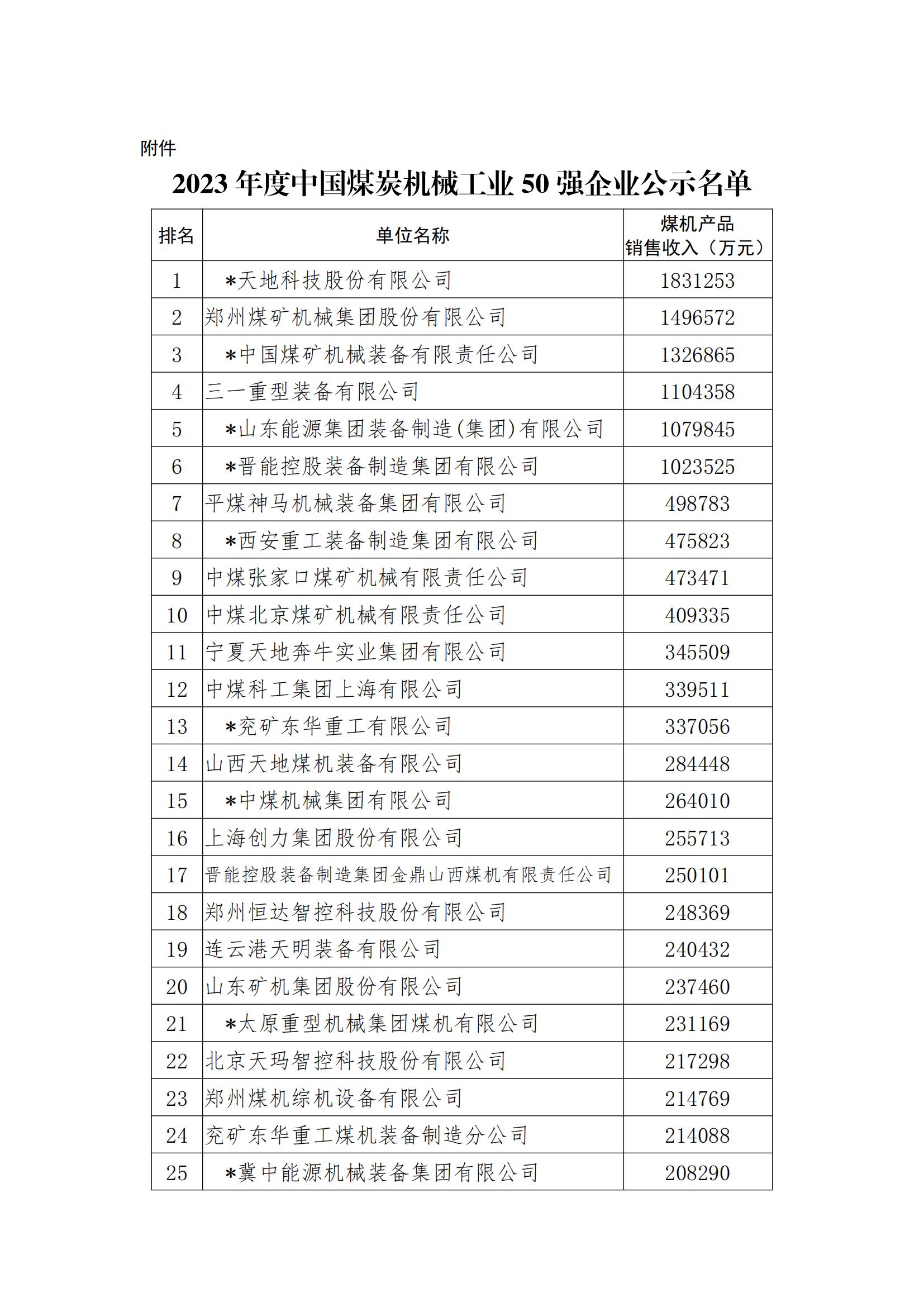 2024年5月30日,中國(guó)煤炭機(jī)械工業(yè)協(xié)會(huì)公示了2023年度中國(guó)煤炭機(jī)械工業(yè)50強(qiáng)企業(yè)名單,浙江中煤機(jī)械科技有限公司連續(xù)五年上榜,位列第48名。公司控股母公司上海創(chuàng)力集團(tuán)位列第16名。