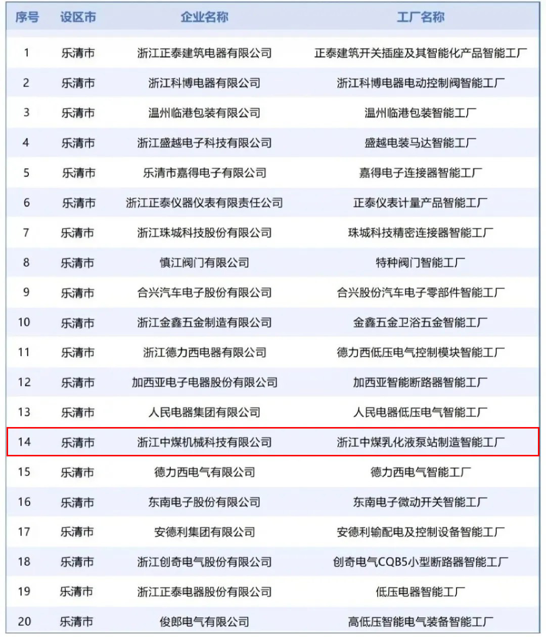 近日,省經(jīng)信廳公布2025年浙江省先進(jìn)級(jí)智能工廠(第一批)名單。其中,樂清20個(gè)工廠入選。